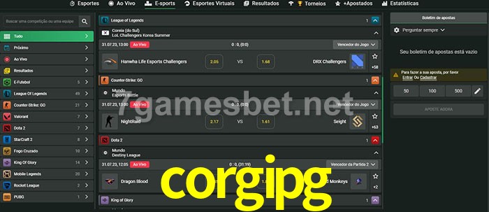 O corgipg oferece uma grande seleção de opções de apostas em e-sports com probabilidades competitivas